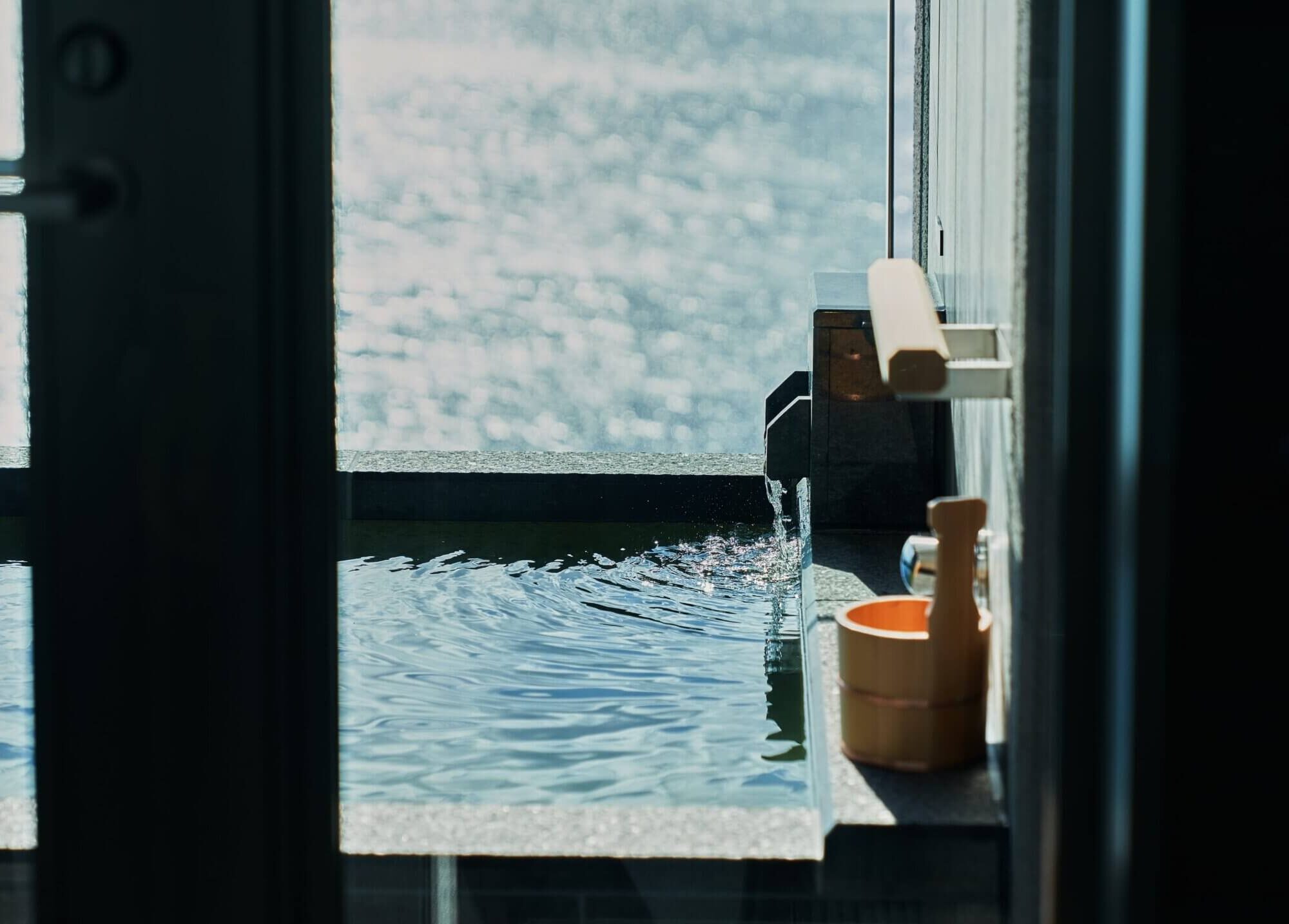 特に夕暮れ時や朝焼けの時間帯は、水平線のグラデーションと湯気が重なる幻想的なひととき。宿泊者だけが見ることのできる景色が、この特別なひとときを演出します。