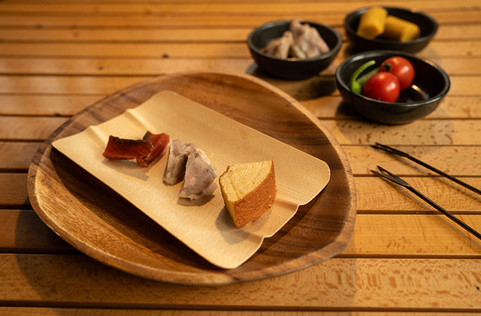 また、薪には安全性と地域性を考慮し、煙が出づらい北海道産白樺を採用、提供フードにも地域性を感じていただきたく北海道産の鮭とばなどを用意いたします。